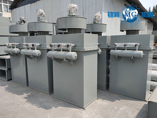 含塵氣體進(jìn)入進(jìn)氣口進(jìn)入下箱后,部分沉降,輕微粉塵浮動(dòng)時(shí)被濾袋阻留,凈化空氣透過濾袋,經(jīng)文氏管進(jìn)入上箱體,從出氣口排出。積附在濾袋外壁的粉塵不斷增加,當(dāng)阻力在限定(一般為80-120毫米水柱)的范圍內(nèi),就要清除積附在過濾外壁的粉塵,清灰是由控制儀定期順序觸發(fā)各控制閥,開啟脈沖閥,使氣包內(nèi)的壓縮空氣由噴吹管孔噴出(一次風(fēng))通過文氏管誘導(dǎo)數(shù)倍于一次風(fēng)的周圍空氣(二次風(fēng))進(jìn)入濾袋,使濾袋在一瞬間急劇膨脹并伴隨著氣流的反向作用,被抖落地粉塵落入灰門經(jīng)排灰閥排出機(jī)體。
