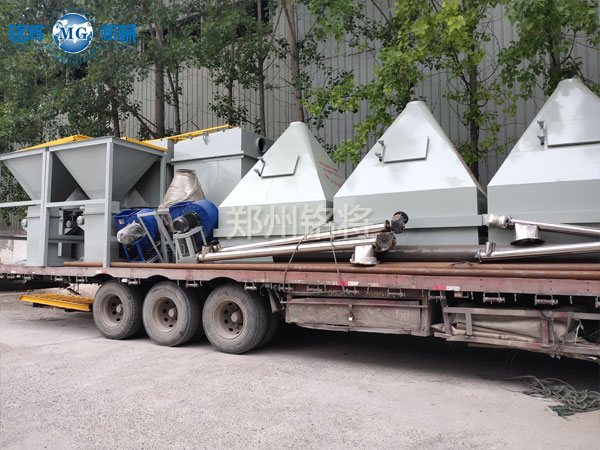 帶氣力輸送全自動(dòng)干粉砂漿設(shè)備裝車發(fā)往新密